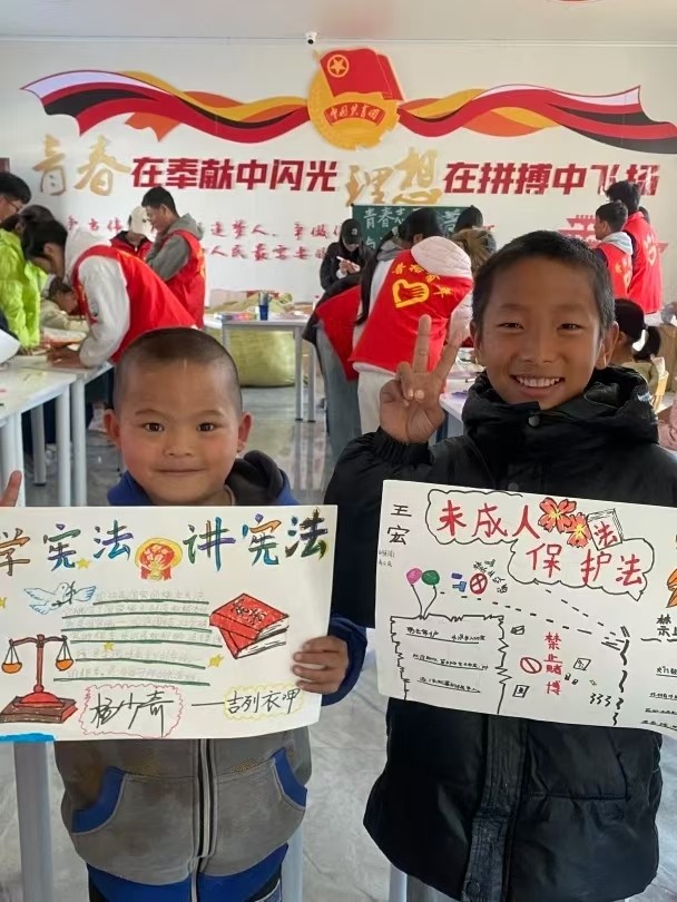 1月29日,县关工委联合团委委组织的40余名返乡大学生志愿者队伍走进红军树村,面向留守儿童和未成年人群体开展“青春志愿·与法同行”大学生寒假返家乡普法志愿活动与禁毒防艾宣传教育活动。活动聚焦未成年人保护和健康安全教育,通过“宣讲+互动+创作”的形式,为乡村孩子带去一堂生动而深刻的法治与健康课。