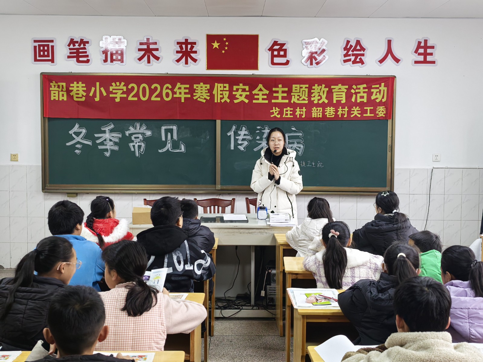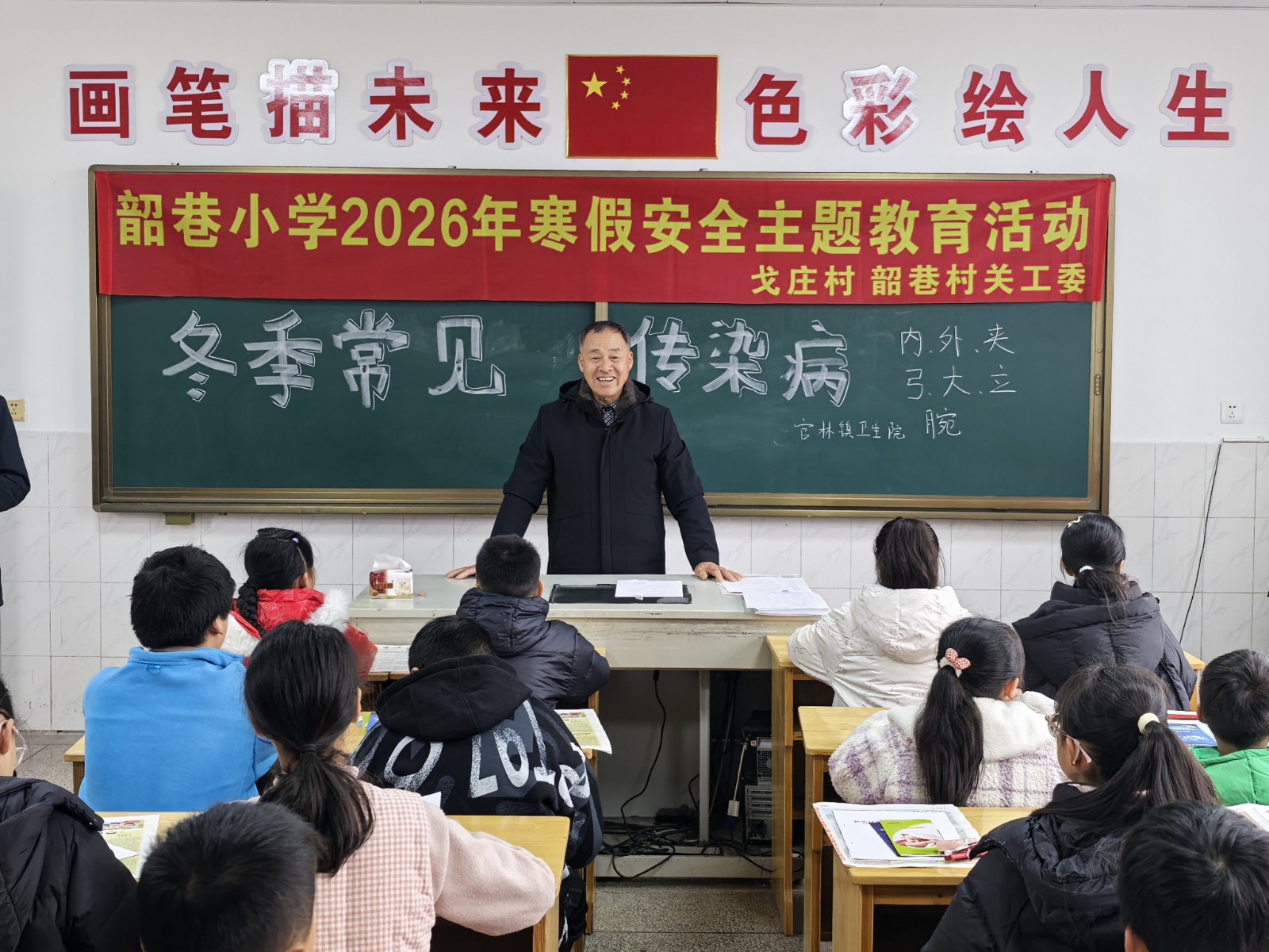 官林镇戈庄村校外教育辅导员吴顺清首先以《快乐过寒假 安全不放假》为主题,讲述了寒假春节期间青少年守牢安全防线的重要性,并结合青少年身边的不安全因素和以往易发多发的伤亡事故,重点讲了如何平安出行、安全用电用气、正确燃放鞭炮等,让未成年人远离各种事故伤害。来自官林派出所、官林交警中队的民警和驻村律师也从不同的侧面宣讲了道路交通安全、反诈骗、防溺水、绿色上网等相关法规知识,官林镇卫生院防保所的专业人士还通俗易懂地宣讲了预防传染病相关知识。本次宣讲活动,切实增强了未成年人的安全法治健康意识,提高了防范安全风险、远离事故伤害的能力,为孩子们过一个平安、祥和、有意义的寒假奠定了坚实的基础。