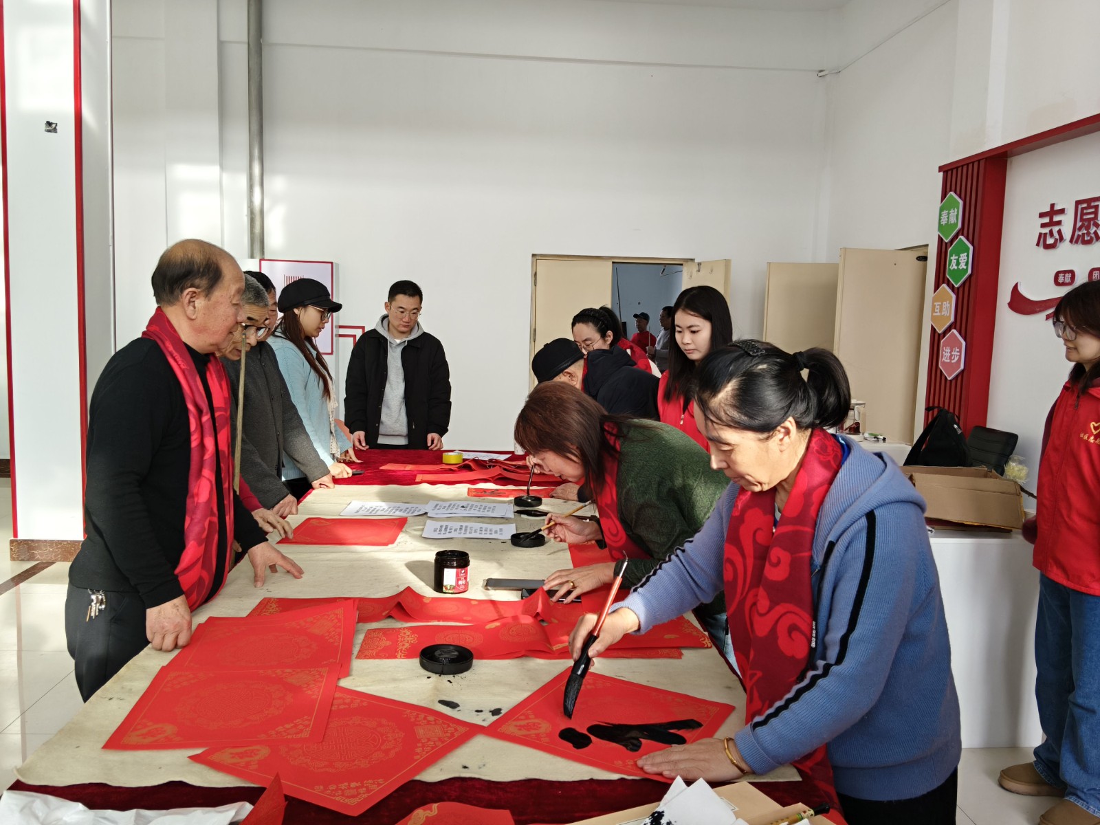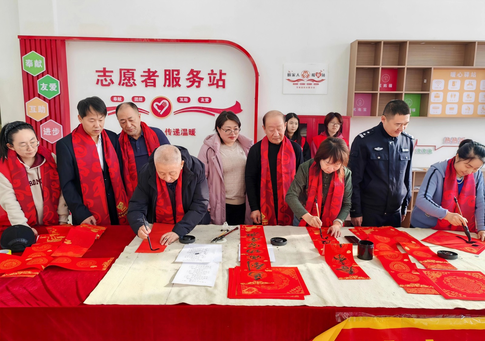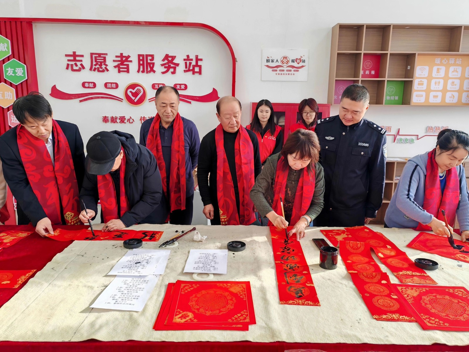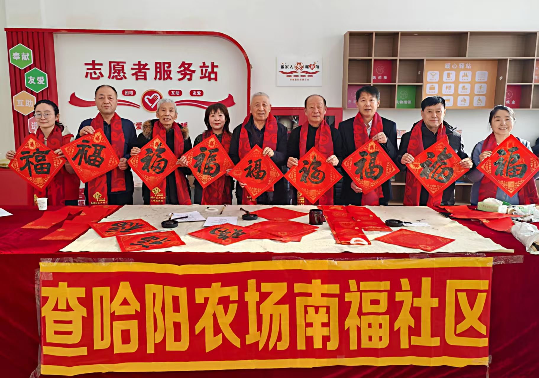 瑞雪迎新春,墨香润民心。2月5日,查哈阳农场关工委携手南府社区、派出所“双阳工作站”开展了“墨香迎新春 送福进万家”主题活动,农场关工委常务主任刘喜贵、老促会会长马明远、场史办负责人曹培杰、甘南县党工委副书记韩富红及部分“五老”代表、南福社区工作人员、青年志愿者和职工群众100余人参加了活动。