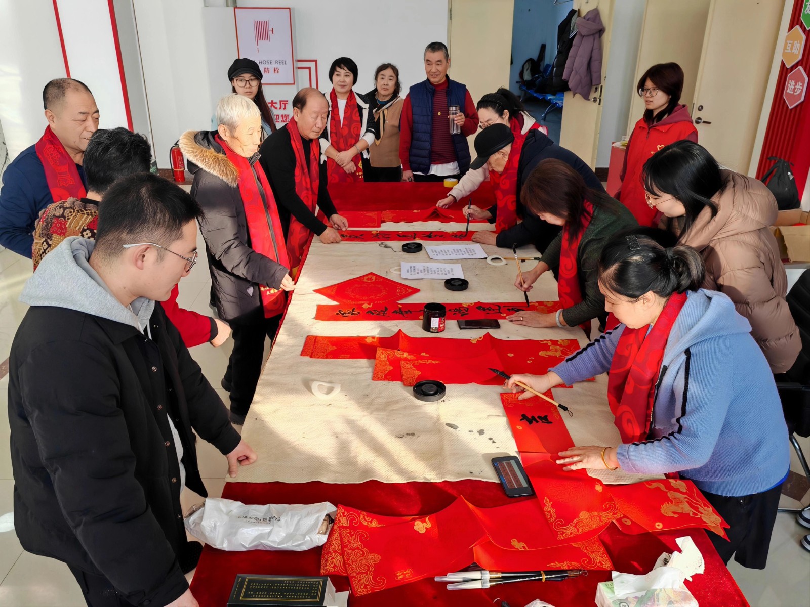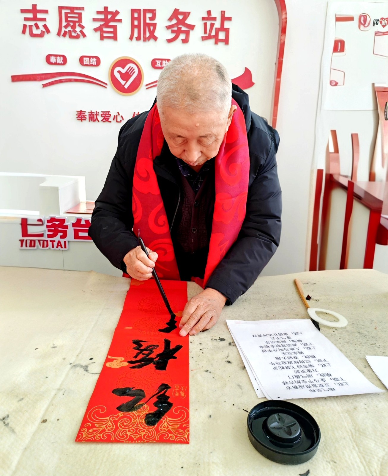 挥毫泼墨间,墨香满溢;欢声笑语中,福暖人心。经过三个多小时的创作,志愿者们共书写春联、福字1000余幅,刚写好的作品带着墨香便被闻讯而来的职工群众争相领走,大家手捧红联福字,脸上洋溢着幸福的笑容。