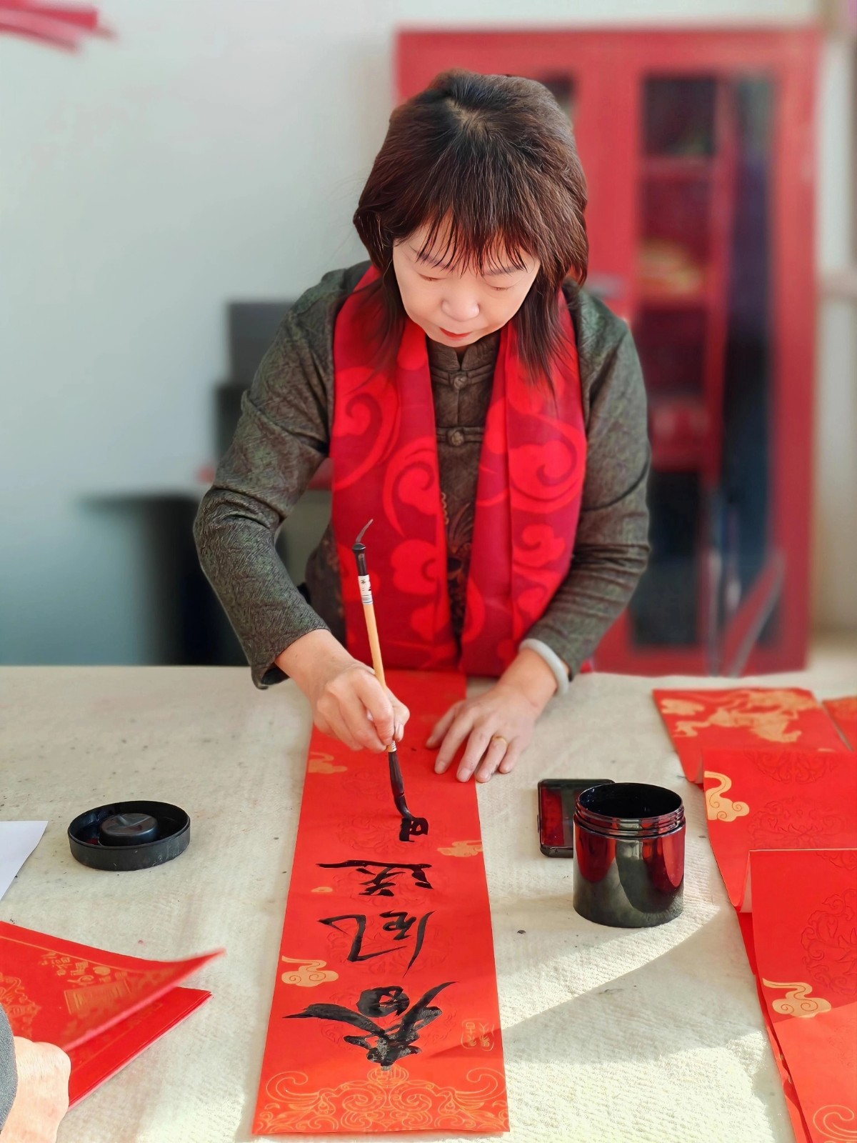 农场书画爱好者、“五老”志愿者们齐聚一堂,挥毫泼墨写春联、送福字,将浓浓的新春祝福和满满的北大荒温情送到了职工群众手中,让传统年味在墨香中愈发浓厚。