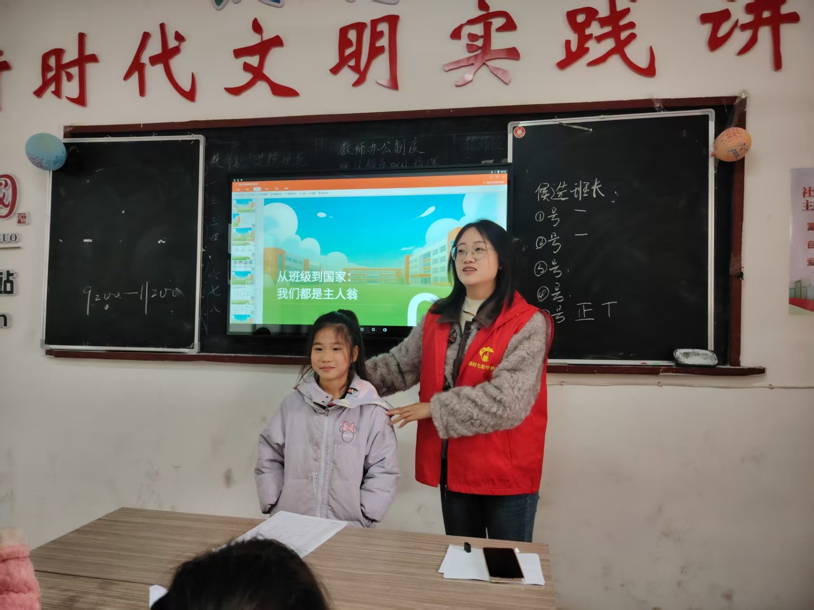 为增强教育实效,志愿者创新设置互动体验环节,让孩子们沉浸式感受民主运作流程。课堂上,孩子们通过现场选举班长,切实体验民主选举全过程——从候选人发言、公开投票到当场唱票公布结果,每一个环节都让他们亲身感受到公平、公开、公正的选举氛围。