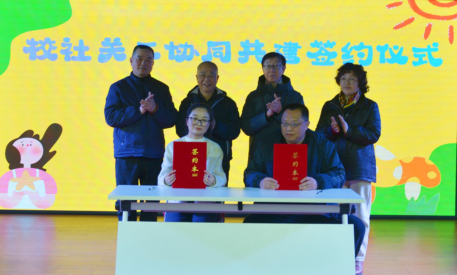 活动现场,新安街道关工委与无锡市行知技工学校签署了新一年度“校社关工协同共建”协议,为政、校、社深度合作奠定了制度化基础。同时,街道、学校、企业、家庭四方代表共同在“家校社协同共建,共筑成长新生态”卷轴上郑重签名,象征着从情感认同到行动一致的深度联结。