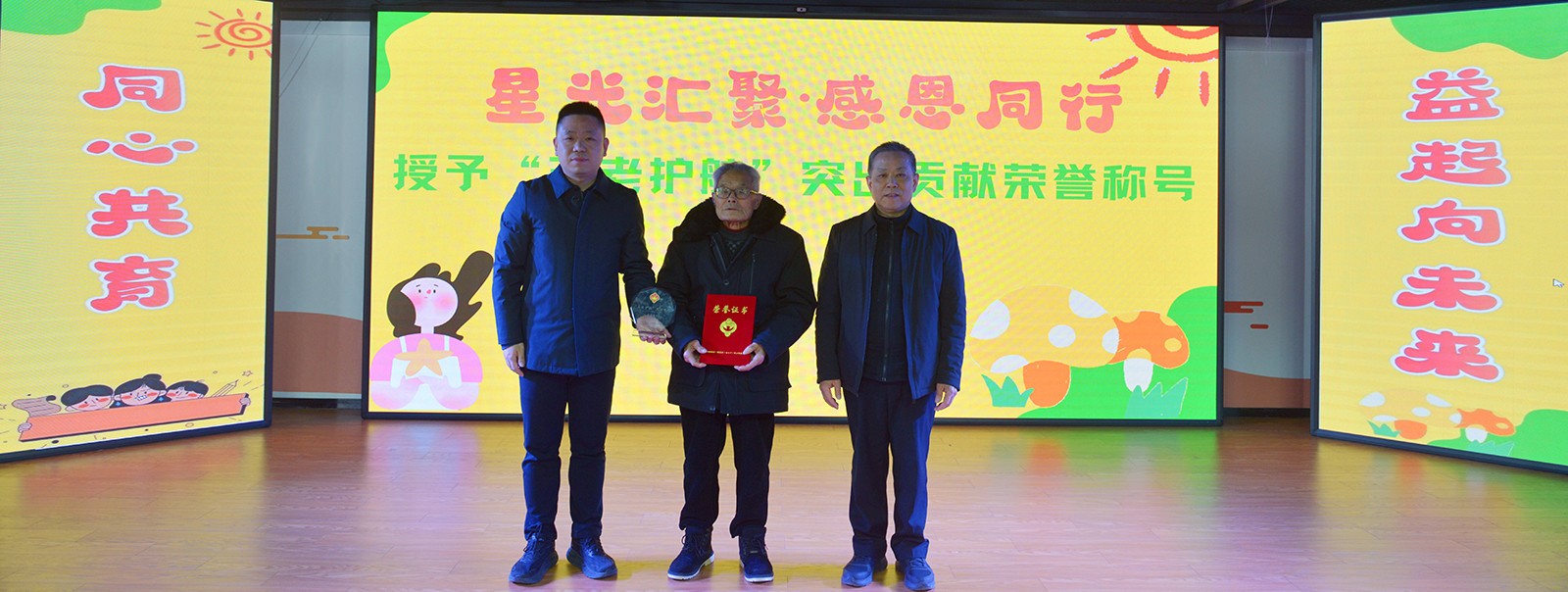 在“星光汇聚·感恩同行”致敬环节。区关工委主任冯惠兴代表区关工委向年过九旬仍热心不减的“五老”楷模钱志衡老师颁发突出贡献荣誉证书,勉励他继续发挥自身优势,关心青少年健康成长。现场还授予三位爱心企业家“湖湾新苗守护者”称号,为积极向上的青少年代表送上“未来之星”成长礼盒,并为优秀“五老”及社区志愿者点亮“新益之光”。