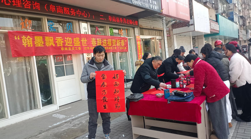 2月8日上午,安徽省阜阳市阜南县关工委、阜南县红传书画院、阜南县税务局关工委、阜南县丁光幼儿园、阜南县心理学会等单位,在丁光幼儿园曹集路校区联合举办“翰墨飘香迎盛世 春联送福贺新春”主题公益活动。