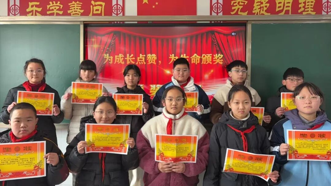 活动以班级为独立单元有序开展,各班班主任及任课老师结合学生一学期的综合表现,围绕品德修养、学业进步、劳动实践、文体才艺、志愿服务、行为习惯等多个维度,精心设置了语文之星、文明标兵、进步之星、劳动能手、阳光少年等一系列特色荣誉奖项,让每一个孩子的闪光点都被看见、被珍视、被嘉奖。颁奖现场,班主任宣读颁奖词,为每一位获奖学子颁发奖状,同学们在此起彼伏的掌声中接过荣誉,稚嫩的脸庞上写满自豪与欢喜。