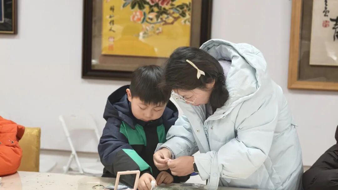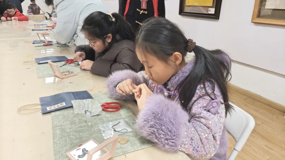 最让孩子们期待的,当属“织锦葫芦挂坠”手作环节。在锦线缠绕间,感受传统织锦工艺的精妙,让非遗技艺触手可及,也让葫芦纳福的美好寓意,凝于方寸锦缎之中。在老师的指导下,学员们以小片云锦织缎为材,巧手裁剪、细致粘黏。那一块块色彩斑斓的云锦碎片,在一双双巧手编织下变成了一个个寓意“福禄”的精美挂坠。当亲手完成作品的那一刻,孩子们脸上都洋溢着满满的自豪感和成就感。这件谐音“福禄”的吉祥物件,不仅是本次研学实践的珍贵成果,更是一份可以带回家、永久珍藏的非遗记忆。
