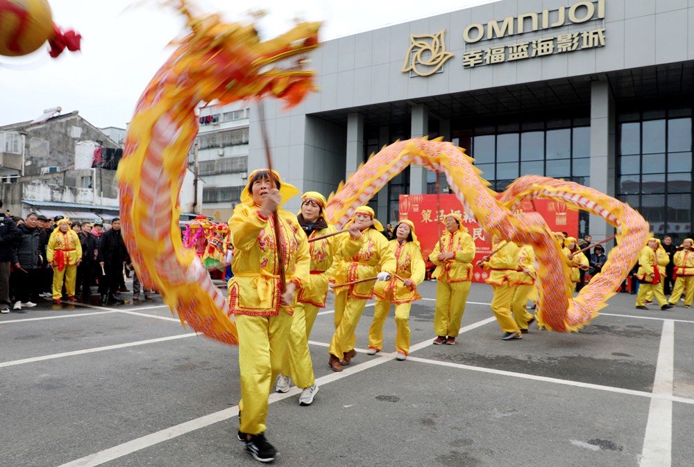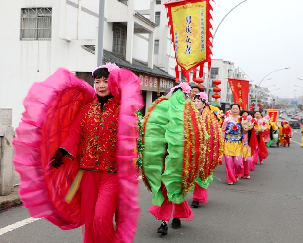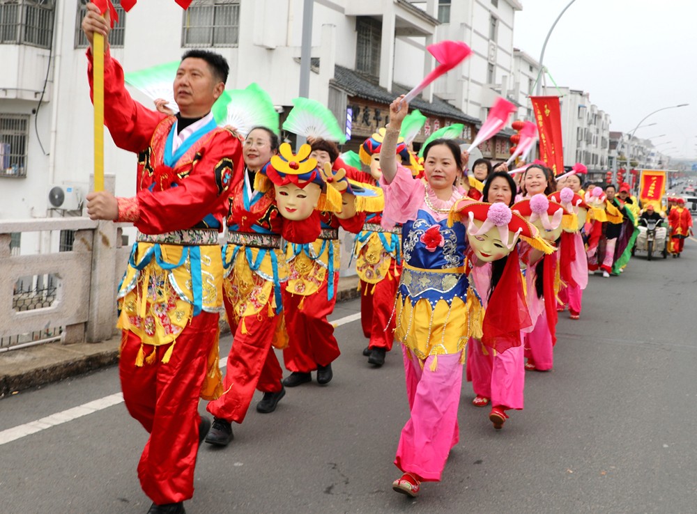3月3日上午,江苏宜兴市杨巷镇热闹非凡,马灯、龙灯、舞狮、旱船等关工“五老”群体民俗队伍沿街巡演,周边地区非遗项目“男欢女喜”和青狮也前来专程助阵。巡演队伍沿主街道行进展演,随后在电影院门前集中亮相,轮番献上精彩表演。多项非物质文化遗产集中展示,吸引上千市民驻足观看,现场锣鼓喧天、喜气洋洋,尽显传统民俗魅力,营造出浓厚的节日文化氛围。老百姓兴奋地说:“这般非遗亮相,看的真过瘾。”