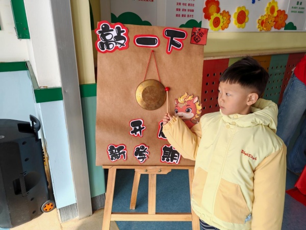 仪式现场暖意融融,关工小组为孩子们准备了寓意美好的吉祥好物:香甜的糖果,祝愿每一位宝贝在幼儿园的生活甜甜蜜蜜、快乐无忧;饱满的花生,寄托着好事连连、顺遂安康的美好期盼;红彤彤的柿子,寓意着新的学期红红火火、蒸蒸日上。清脆响亮的锣鼓声铿锵响起,激昂欢快的节奏响彻校园,象征着敲开成长的大门,愿孩子们在新学期勇敢自信、快乐成长。