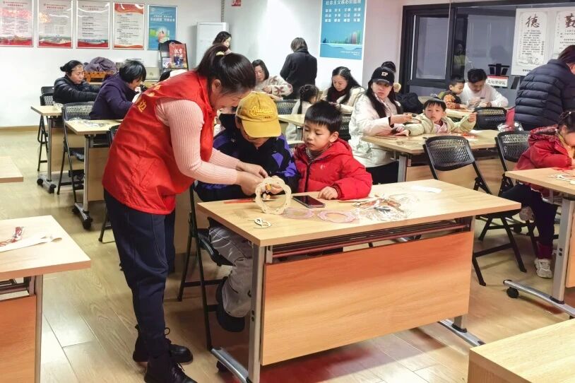 活动伊始,社区活动室内暖意融融、热闹非凡。志愿者向大家介绍了元宵节的起源与传统习俗,让孩子们对这一传统节日有了更深入的了解。随后,亲子花灯制作环节正式开始。孩子们在家长的陪伴下,认真制作灯笼框架,家长们则悉心指导,协助孩子固定灯架、穿引挂绳。不一会儿,一盏盏色彩斑斓的花灯便在大家的巧手中诞生了。看着自己亲手制作的花灯亮起温暖的灯光,孩子们兴奋地欢呼雀跃,现场洋溢着满满的成就感与幸福感。这一环节不仅锻炼了孩子们的动手能力,更让他们在亲子协作中近距离感受中华优秀传统文化的魅力。