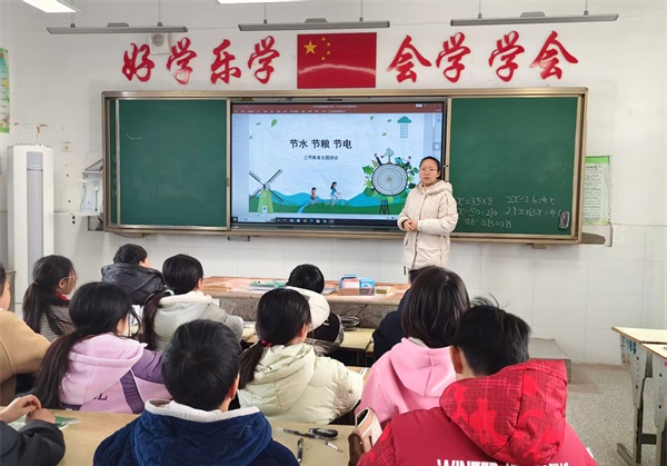 班会课上,各班主任结合学生年龄特点,设计了丰富多样的教学内容。一至二年级以“粒粒皆辛苦”为主题,通过观看《悯农》动画、讲述农民伯伯种粮故事,让低年级学生直观感受粮食来之不易;三至四年级开展“节水节电小妙招”讨论活动,学生们分组分享家庭节水节电方法,如“用淘米水浇花”“离开教室随手关灯”等,现场氛围热烈;五至六年级则围绕“校园节约我先行”展开实践探究,组织学生对校园水电使用情况进行调查,提出“设置节水节电监督员”“制作节约宣传海报”等创意方案。