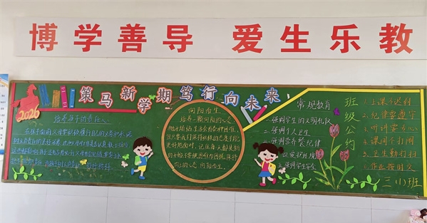 活动启动后,各中队紧扣主题,围绕班级公约、常规习惯教育、心理健康、责任教育四大核心板块,分工协作、匠心创作。队员们结合班级特色,将行为准则、成长公约、文明习惯等内容清晰呈现;通过图文结合的形式,普及日常行为规范要点;用温暖治愈的话语、生动的插画传递心理健康知识,引导学生悦纳自我、调节情绪。奔马、朝阳、星光等元素融入版面设计,既彰显马年奋进朝气,又传递少年逐梦的坚定信念,一块块黑板报成为班级文化与育人理念的生动载体。