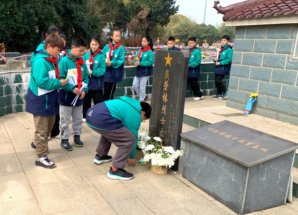 3月31日,江苏宜兴杨巷小学小教支部在职党员、关工委成员带领五年级全体师生,前往该镇安乐上公墓,开展对1979年在自卫反击战中牺牲烈士戴芳林祭扫活动。作为学校坚持多年的常态化教育活动,今年师生代表再次如约齐聚戴芳林烈士纪念碑前,以庄重仪式缅怀革命先烈,传承红色精神。