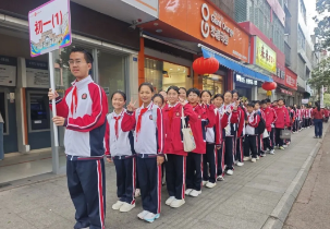 清晨,初2025级学生在班主任与科任老师组织下于校内广场集结。校关工委成员、陈校长作动员讲话,鼓励同学们以科学视角观察世界。四个班级沿新华街、育才路、凤凰花园路口、铁路桥一线有序行进,全程安静整齐,文明素养在行走中自然体现。