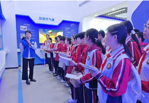 抵达气象站后,各班分两组交替参观。在场外等待期间,同学们唱级歌、梳理研学要点,相互提醒爱护环境、不触碰仪器。进入场馆后,大家认真聆听讲解,仔细观察气象观测设备,积极完成研学任务。面对各类仪器,同学们驻足思考、主动请教,老师们结合实物讲解原理,引导大家将课堂知识与实践观察一一对照,真正做到了问学相长、知行并进。