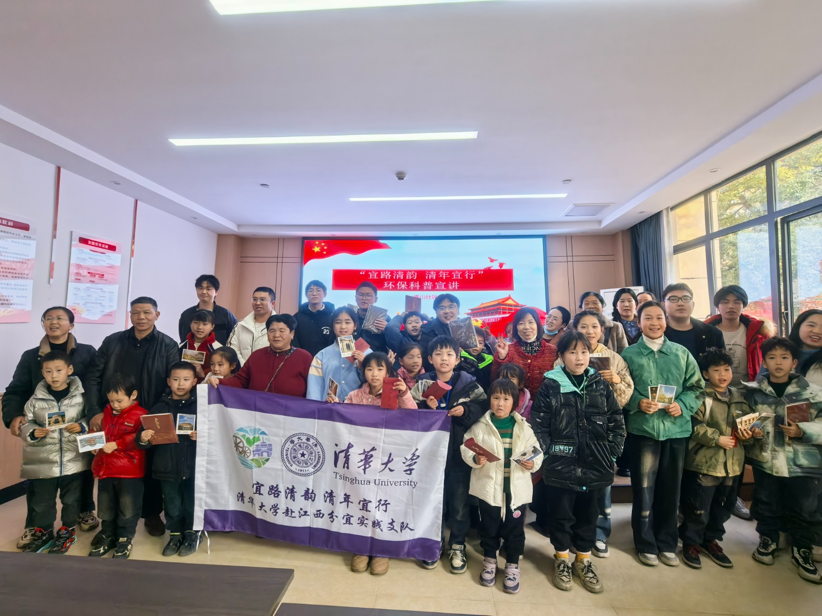 1月22日,江西省新余市分宜县钤西街道青山社区关工委联合清华大学分宜实践支队开展“‘宜’路清韵,‘清’年宜行”环保科普宣讲活动,40余名中小学生及20余位家长参加活动。