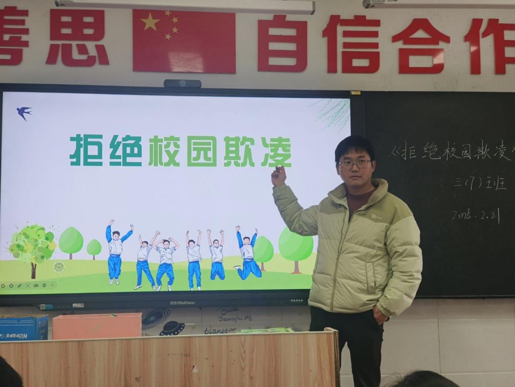 班会上,班主任们通过播放生动形象的PPT和视频、深入浅出地向同学们讲解了校园暴力欺凌的定义、表现形式、危害后果以及应对方法,让学生了解了校园暴力欺凌相关的法律责任,引导学生树立底线意识。