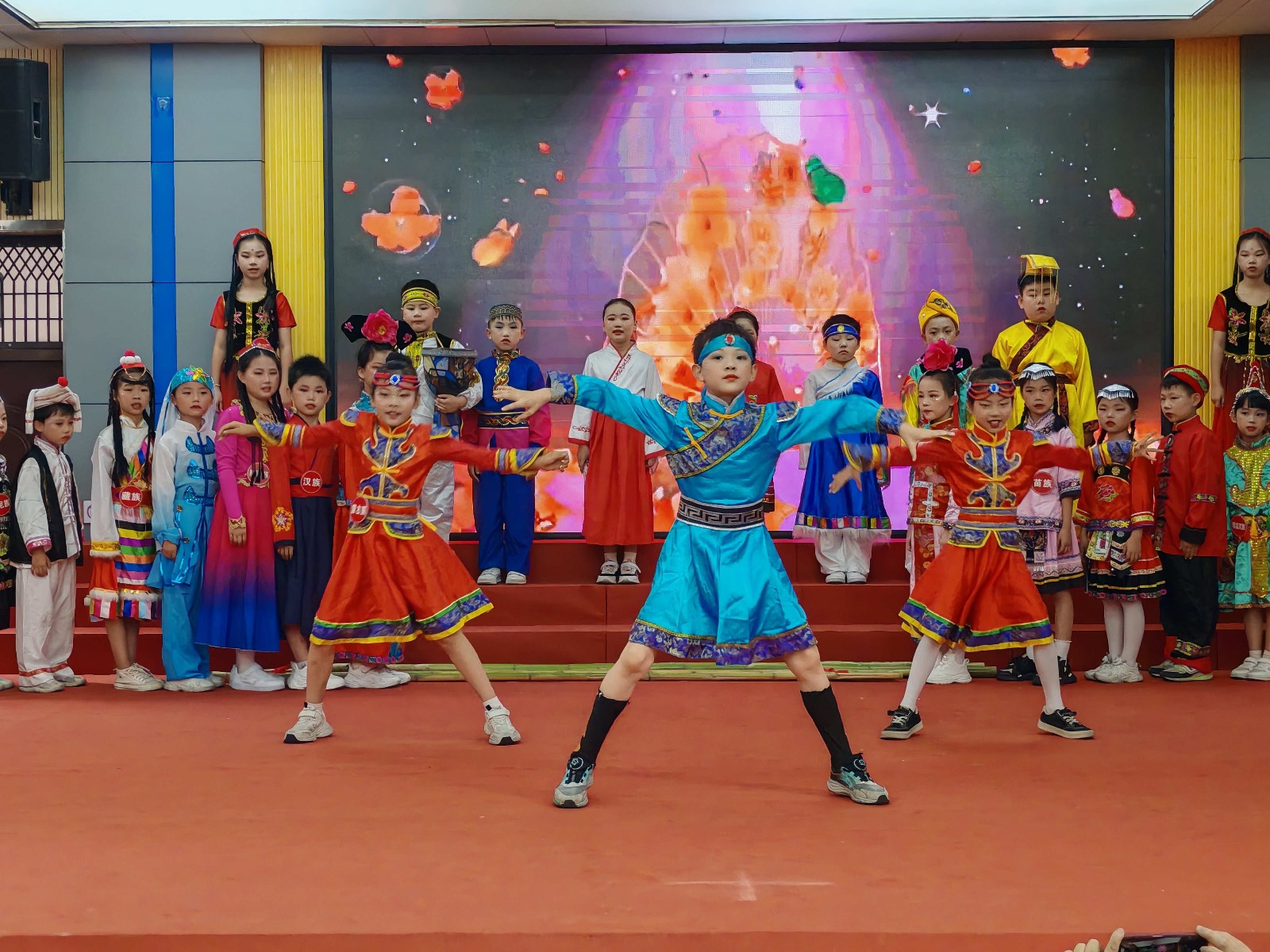 艺术节分年级展开,各具特色。一年级中国动画歌曲演唱;二年级红色歌曲演唱;三年级民族服饰秀;四年级《新余我家乡》演唱;五年级葫芦丝演奏。