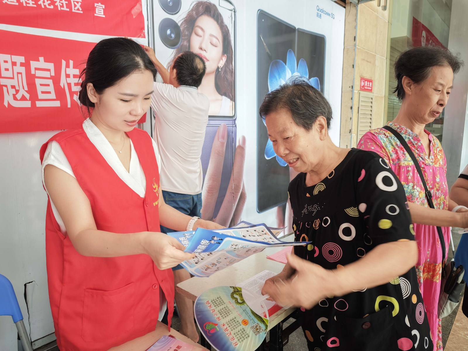 活动现场,桂花社区关工委充分发挥"“五老”"的独特优势,组织动员"“五老”"志愿者积极参与。在义诊区,袁河医院和安瑞尔医院的医护人员为居民提供免费量血压、健康咨询、口腔检查等服务,特别关注青少年健康成长,耐心解答居民的健康疑问;在生活服务区,"爱之缘"志愿服务队的志愿者们为居民提供免费理发、公益磨刀等贴心服务,让居民在家门口就能享受到便利;在知识宣传区,社区关工委工作人员通过发放宣传手册、现场讲解等方式,重点向青少年及家长普及垃圾分类、防溺水、反诈骗等实用知识,提升安全意识和环保意识。