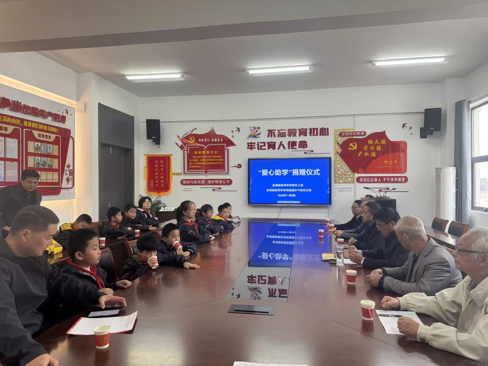 11月6日,金湖县教体局关工委携手局离退休党支部在实验小学滨湖校区举行济困助学金发放仪式。关工委常务副主任陈玉林向14名受助学生发放3000元助学金。