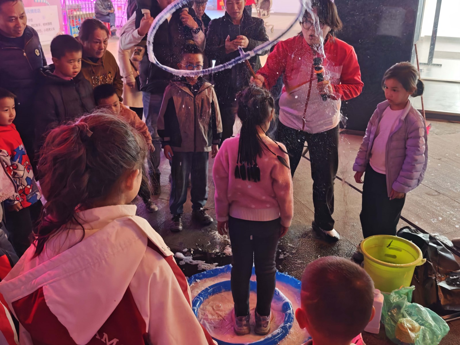 活动在“五老”成员舞蹈队活力满满的广场舞《看江西》中开场,队员们用跃动舞步展现赣鄱生机,台下小朋友跟着节奏晃脑袋,家长举机记录,亲子互动暖意融融。最受孩子欢迎的“科学秀”亮点纷呈:梦幻泡泡秀裹住童声笑语;马德堡半球实验里,孩子们撸袖合力拉球,憋红脸喊“加油”;“逆流而上”实验中,水流沿管道向上奔涌,小不点儿踮脚探头追问“水咋会喷出来?”,科学的种子随惊叹生根。