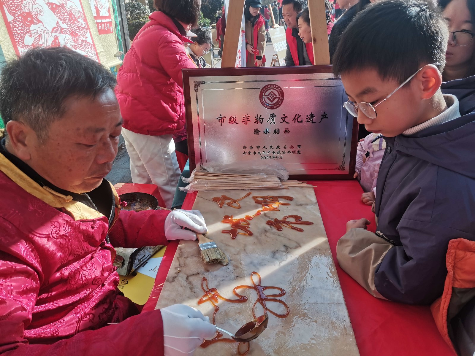活动现场精彩纷呈:舞台表演区歌舞乐器轮番登场,互动问答笑声不断;文明打卡区居民们拍照集赞、签名承诺,传递社区文明新风尚;非遗体验区糖画剪纸巧手生花,传统技艺引来阵阵赞叹;便民服务区口腔检查等贴心服务,实实在在送到家门口。