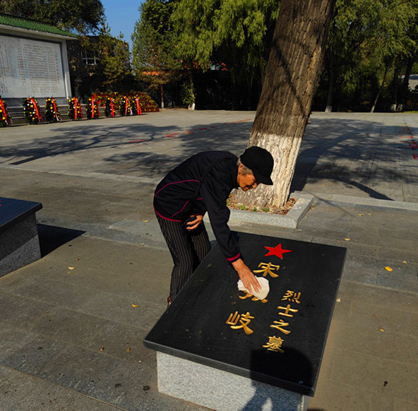 2025年9月30日,中国烈士纪念日。9时许,“吉林好人”“松原市老干部标兵”“松原市优秀‘五老”’标兵”前郭县关工委顾问87岁的宁布,携85岁老伴,带着准备好的水桶、麻布等用品,来到前郭烈士陵园,为长眠这里英烈陵墓细心恭敬地做起了保洁。