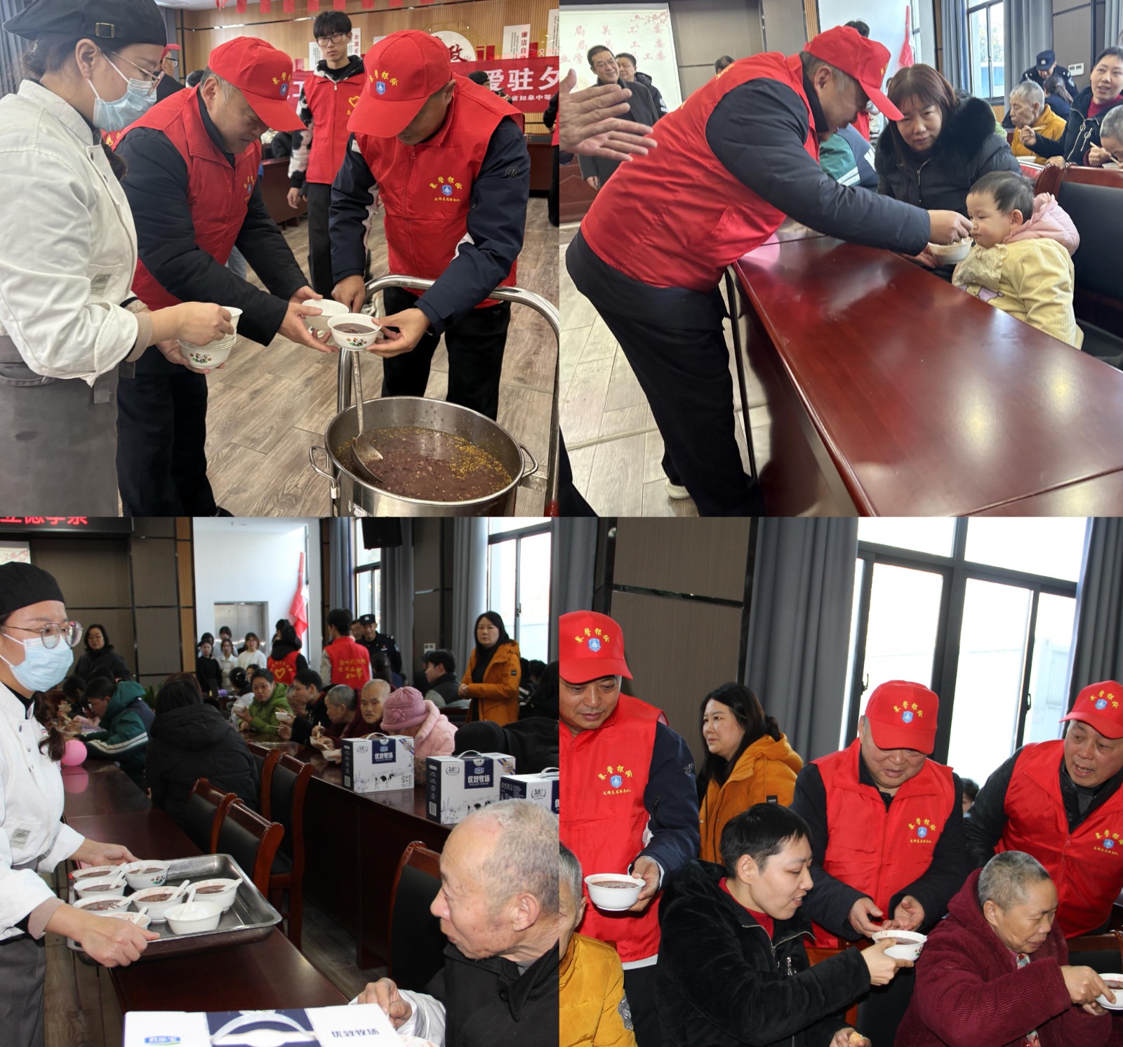 腊八送粥,暖身更暖心。在粥品分发区域,氤氲的热气模糊了冬日的寒凉,“五老”志愿者、师生们分工协作,小心翼翼地端起一碗碗熬煮软糯的腊八粥,逐一送到每位老人和学生手中。对于行动不便的老人,志愿者们主动走进房间,温柔喂食,轻声询问身体状况,陪着老人话家常、忆往昔,用耐心与细心驱散老人的孤独。江苏省如皋中等专业学校学工处(校团委)成员适时为现场人员讲述腊八节的传统习俗与文化渊源,让浓郁的文化气息萦绕现场,老人们、学生们边品热粥、边聊家常,幸福的笑容在皱纹间绽放,定格成冬日里最动人的画面。