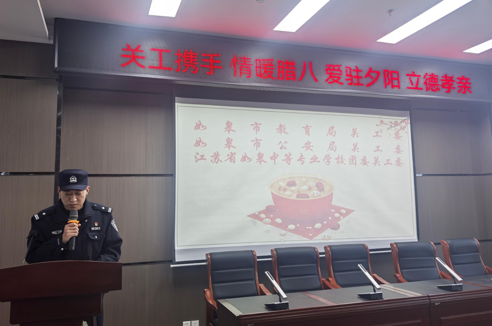 “愿天常生好人,愿人常行好事。”如皋东大街迎春桥上的百年对联,恰是这座世界长寿乡孝善文化的生动注脚。岁至腊八,粥暖情长,在这个承载着团圆期许与敬老传统的节日来临之际,1月22日下午,江苏省如皋市公安局关工委联合市教育局关工委、江苏省如皋中等专业学校,组织“五老”志愿者、迎春派出所关工站民警代表走进如皋市社会福利中心,落实中央十六部门联合部署开展的“把爱带回家——暖心护航伴成长”2026寒假儿童关爱服务活动精神,以“关工携手,情暖腊八,爱驻夕阳,立德孝亲”为主题开展专项活动,用银龄担当与青春活力,为寒冬里的老人和孩子送上最真挚的温暖,续写着长寿之乡的温情篇章。