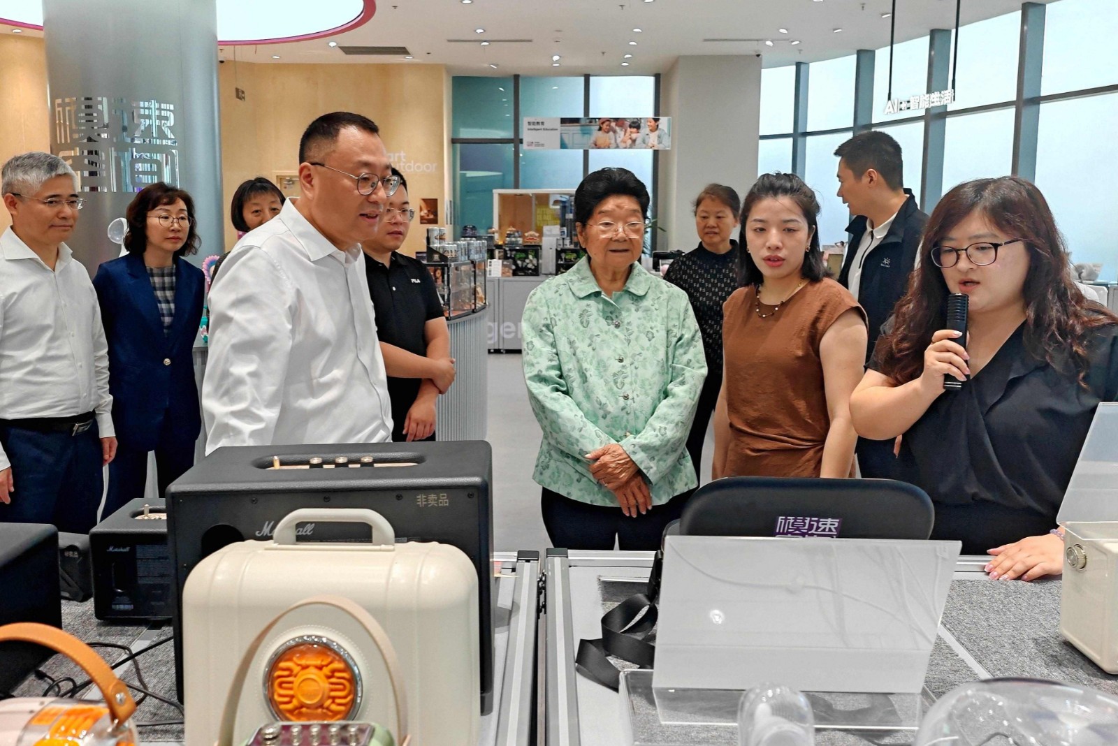 位于徐汇滨江的上海“模速空间”是全国首个专注于大模型创新的生态社区,旨在打造从基础研究到产业落地的全链条人工智能生态。顾秀莲一行来到这里调研上海在打造人工智能大模型专业孵化和加速平台、全速推进大模型产业建设方面的创新探索和实践。在听取了基本情况介绍、观看了汇报视频、体验了大模型应用场景和智能终端后,顾秀莲对上海人工智能产业发展取得的突破和进展给予由衷赞扬,并希望上海市关工委在基于大数据、人工智能等高新科技不断迭代升级的大背景,研究探索AI+关心下一代工作,努力用智能科技手段赋能关心下一代工作,让关心下一代工作紧跟时代的发展潮流,紧跟青少年健康成长成才的实际需求,为关心下一代工作注入新的生机与活力。