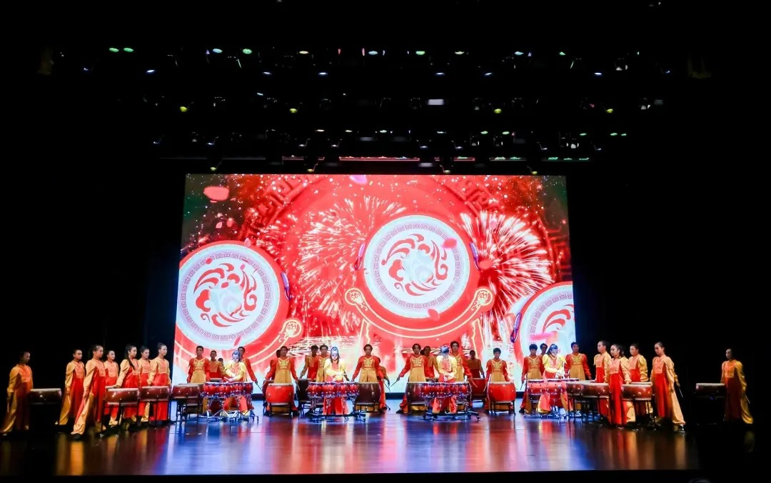 来自房山区学生活动管理中心的同学们表演中国鼓《龙乡鼓韵》