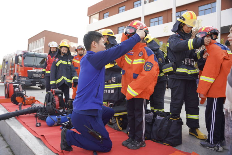 学校关工委特邀徐州经开区消防队对全体教职工和学生进行培训,为教职工们和学生演示了灭火器、防毒面具等的使用,防患于未然。