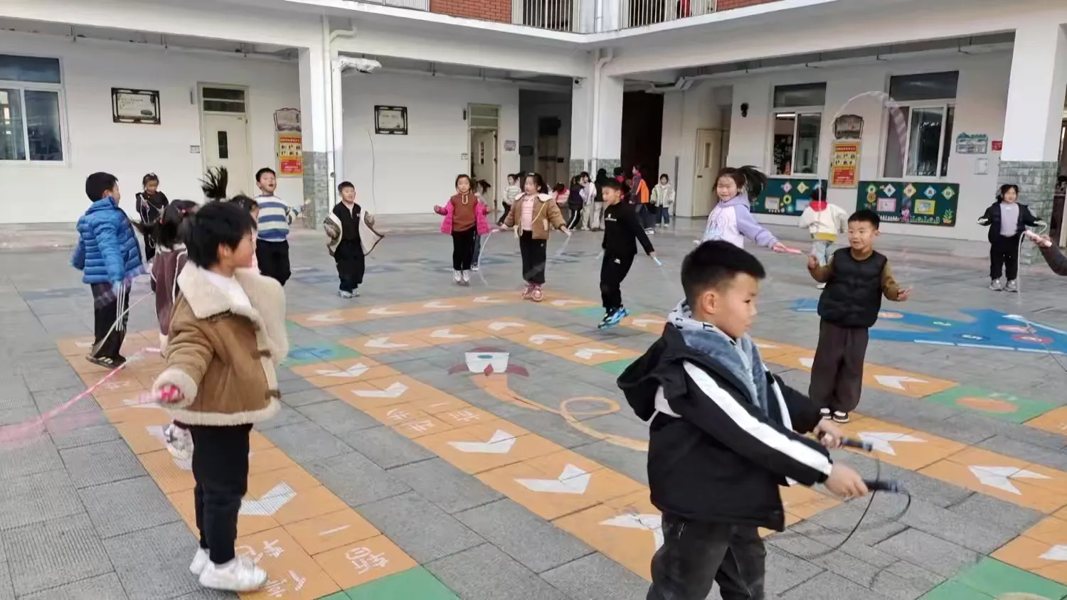 下课了,一年级的小朋友们涌出教室开始了自由的跳绳活动。随着绳子的舞动他们有节奏的跳跃着,灿烂的笑容在他们脸上漾开,多开心呀!在运动中孩子们更加活泼,更加开朗了。