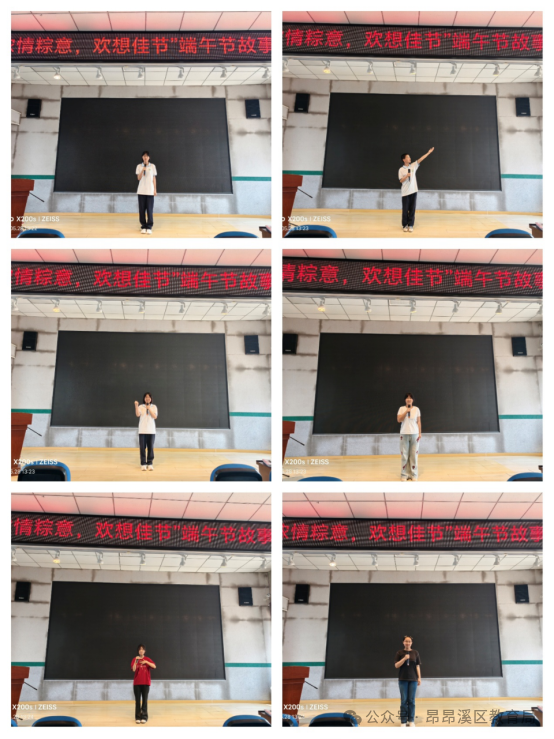 通过故事讲述、情景演绎、互动问答等形式,重温端午起源与习俗,取得了良好的教育成效。故事讲述学生自主搜集屈原、伍子胥、曹娥等历史人物故事,以演讲、课本剧形式呈现。跨学科联动结合语文、历史、美术学科,设计“端午诗词配画”“历史地图标注”等任务。内容多元 贴近主题讲述端午起源、屈原精神等故事,弘扬传统文化。分享“我与家乡的节日”“难忘的端午经历”,引发情感共鸣。