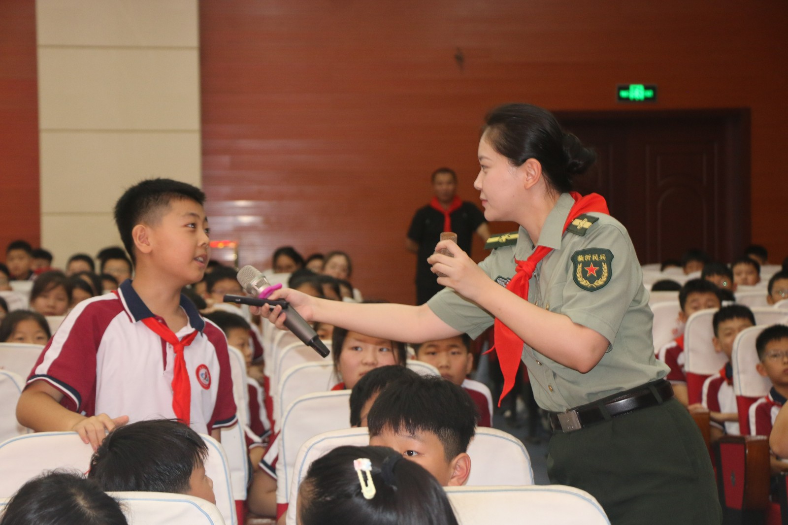 在临沂九曲小学,一场庄重的少先队仪式拉开了开学第一堂思政课的序幕。少先队员们以红领巾巡讲团为载体,通过演讲《红领巾耀河东,沂蒙精神续华章》、演绎歌舞剧《沂蒙山》,生动展现沂蒙精神。华东野战军纪念馆的校外辅导员陈兆君和周学信带来抗战故事宣讲,展示部分武器实物(复制品),还教唱沂蒙红歌《抗日小唱》。同学们在声情并茂的讲述与悠扬的歌声中,仿佛穿越回烽火岁月,深刻领悟“强国复兴有我”的责任担当。
