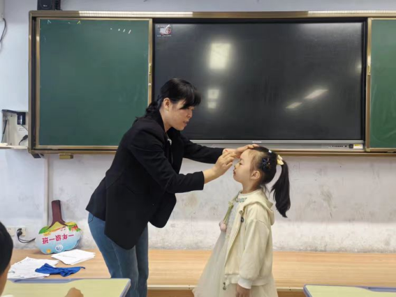 老师们手执朱砂,轻点于孩童额头,一抹鲜红如启明星,承载着“眼明心亮、笃学向善”的期许,为孩子们解锁了“小学生”的崭新身份。