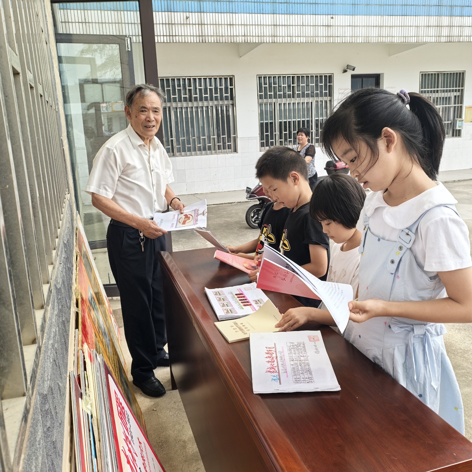 今年七月,年已83周岁高龄的江苏省宜兴市官林镇钮家小学关工委常务副主任、白茫村校外教育辅导员骆榕老师骑着三轮车,冒着高温,不知疲倦地奔忙在前往白茫、钮家、杨舍、桂芳等村校外教育辅导站的路上。他给一批批孩子们宣讲林心平等抗战英烈救国救民、为国捐躯的抗战故事,并告诫孩子们要珍惜今天的幸福生活,弘扬英烈精神,传承红色基因,发奋学习,练就本领,长大后报效祖国、建设家乡。每年一次的暑期青少年主题教育骆榕已坚持了17年,而且宣讲内容常讲常新,孩子们听后入脑入心。在他声情并茂、语重心长的红色主题宣讲后,他还组织孩子们翻阅、分享他多年来整理的一份份鲜活、厚实的党史资料、红色故事、美丽家乡等图文资料,“流动的阅览室”增强了孩子们的红色记忆,丰富了农村孩子的暑期文化生活,已成为官林镇关心下一代工作的一道亮丽风景线。近三年来,共举办巡展20多场次,参观学生1000多人。骆榕先后获评无锡市优秀校外辅导员、无锡市关心下一代工作先进个人、“陶都好人”等荣誉称号。