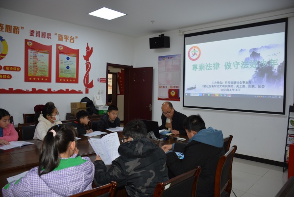 1月14日,为进一步增强青少年学法守法用法的主动性和自觉性,营造青少年健康成长的良好环境,竹韵社区关工委开展“尊崇法律,做守法好少年”普法宣讲活动。社区老党员、退役军人陶建忠根据青少年的年龄和心理特征,以《我未成年 也有权益》为题,从法律是什么、公民享受的权利、未成年人的含义、未成年人的权益四个方面展开,告诉孩子们在不断增强法治观念,提高法律意识的同时,要运用法律武器维护自己的合法权益、提高自我防范意识和保障生命安全的方法策略。