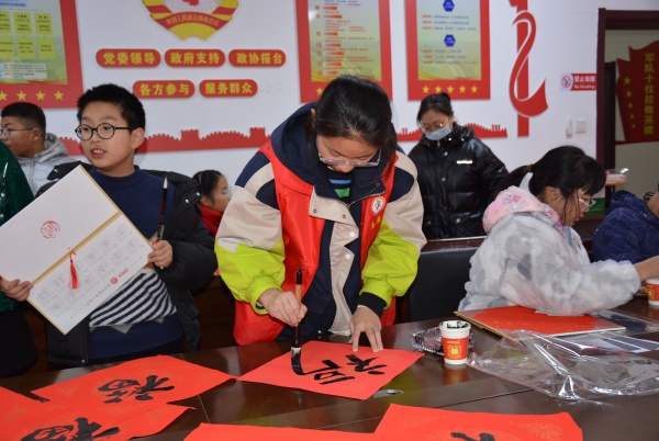 “我要把亲手写的‘福’字送给爷爷奶奶,祝他们龙年健康快乐。”1月29日,家住南通开发区竹行街道竹韵花园的初中生徐海波高兴地说。