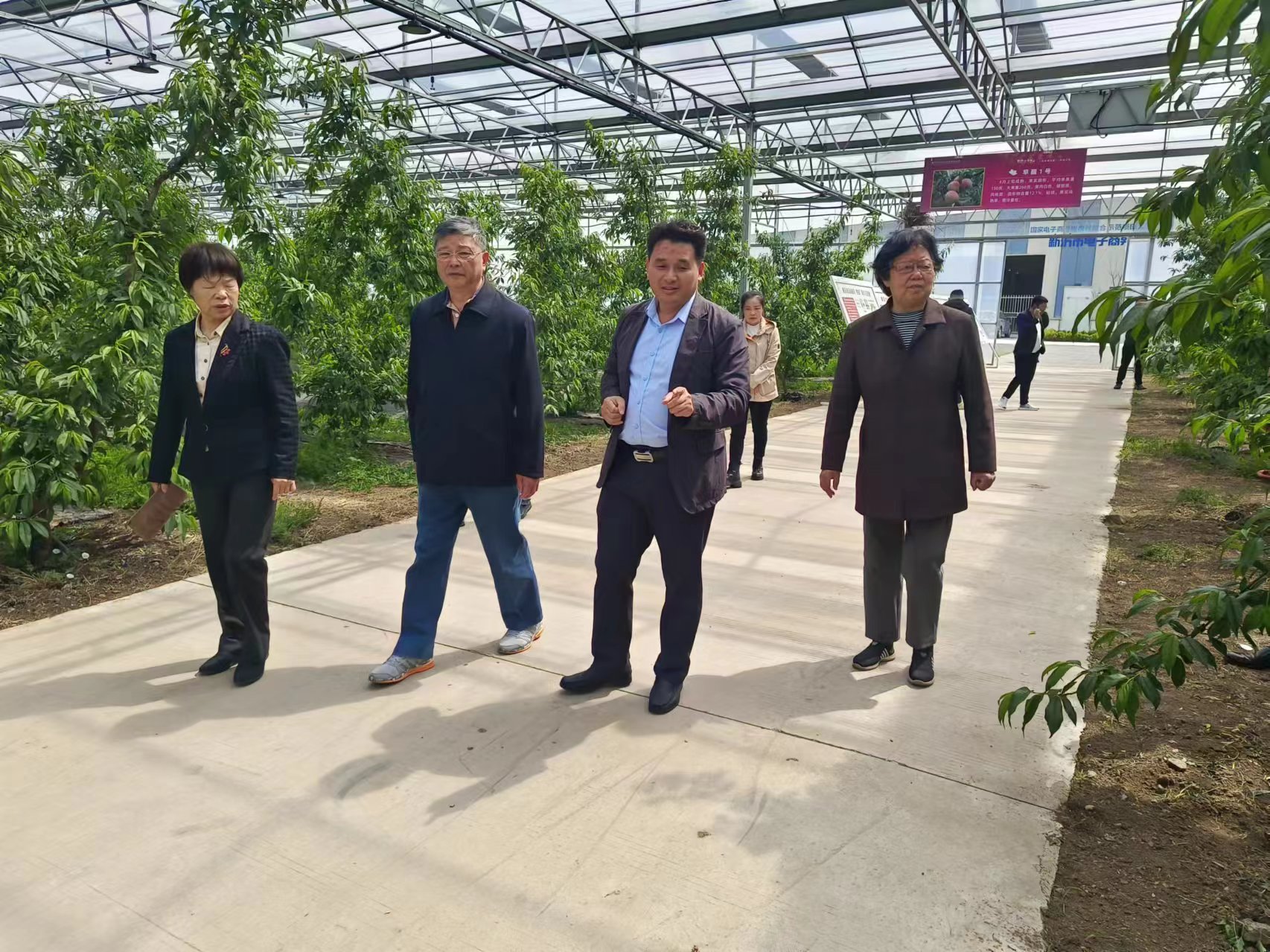 费主任一行先后参观考察了新沂市时集镇水蜜桃种植基地、阿湖镇葡萄产业研发基地,听取了基地负责人的工作汇报,认为新沂市在开展青年农民“三扶两创”工作方面密切联系实际,工作重点突出,活动效果明显,尤其是新沂市与南京农业大学共建葡萄产业研究院,共建教学科研基地,为新沂及周边地区葡萄等果树产业提供技术支撑,培养一大批农业产业“土专家”,值得肯定。他希望新沂市各级关工委,特别是农业农村系统关工委,要进一步发扬成绩,深入学习贯彻习近平总书记对关心下一代工作的重要指示,紧紧依靠各级党委政府的领导,认真落实省关工委的要求,坚持把“三扶两创”工作摆在更加重要位置,组织发动“五老”,投身乡村振兴,助力农村青年创业,培育更多的青年农民创业典型。