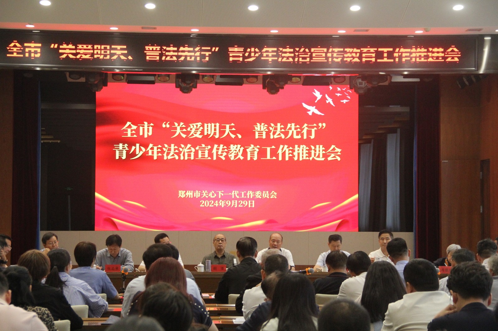 为深入贯彻党的二十届三中全会精神,进一步落实省“关爱明天、普法先行”青少年法治宣传教育工作推进会会议精神,推动青少年法治宣传教育向纵深发展,9月29日上午,郑州市“关爱明天、普法先行”青少年法治宣传教育工作推进会在郑州市中原区人民检察院召开。市关工委主任胡荃出席会议并讲话,中原区委书记李晓雷致辞,市关工委副主任刘海奎主持会议。