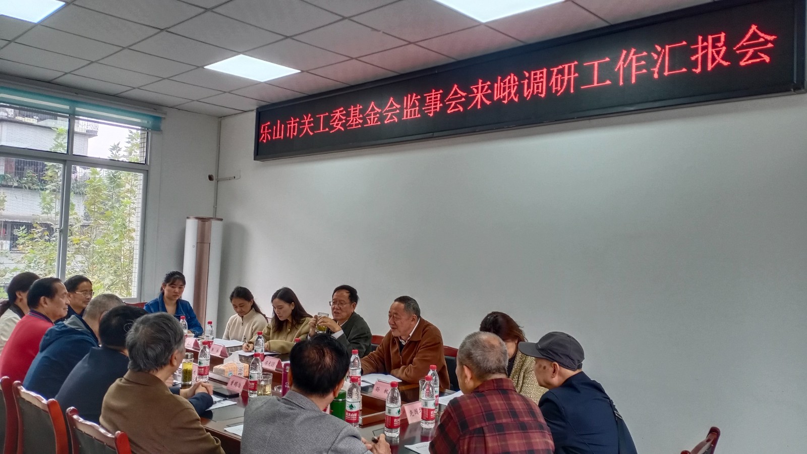 乐山市关工委基金会监事会傅宪鏸、郎天全等一行6人调研指导峨眉山市关工委基金会工作。峨眉山市关工委执行主任李进太、全体常务副主任、副主任参加座谈会,峨眉山市委常委组织部长、市关工委主任曾明浩出席会议并汇报工作。