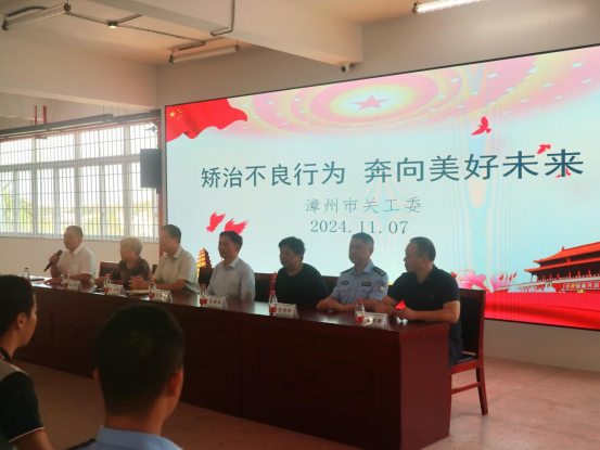 为进一步发挥好关工委在专门教育的职能作用,近日,福建省漳州市关工委到十六中学举行“矫正不良行为,奔向美好未来”报告会,市关工委副主任兼关爱团团长陈青树、市关爱团副团长兼市政法系统“五老”普法工作室主任沈迪辉、市关爱团副团长谢文娟、市政法系统“五老”普法工作室副主任、二级战斗英雄马国民及全体十六中学师生参加报告会。