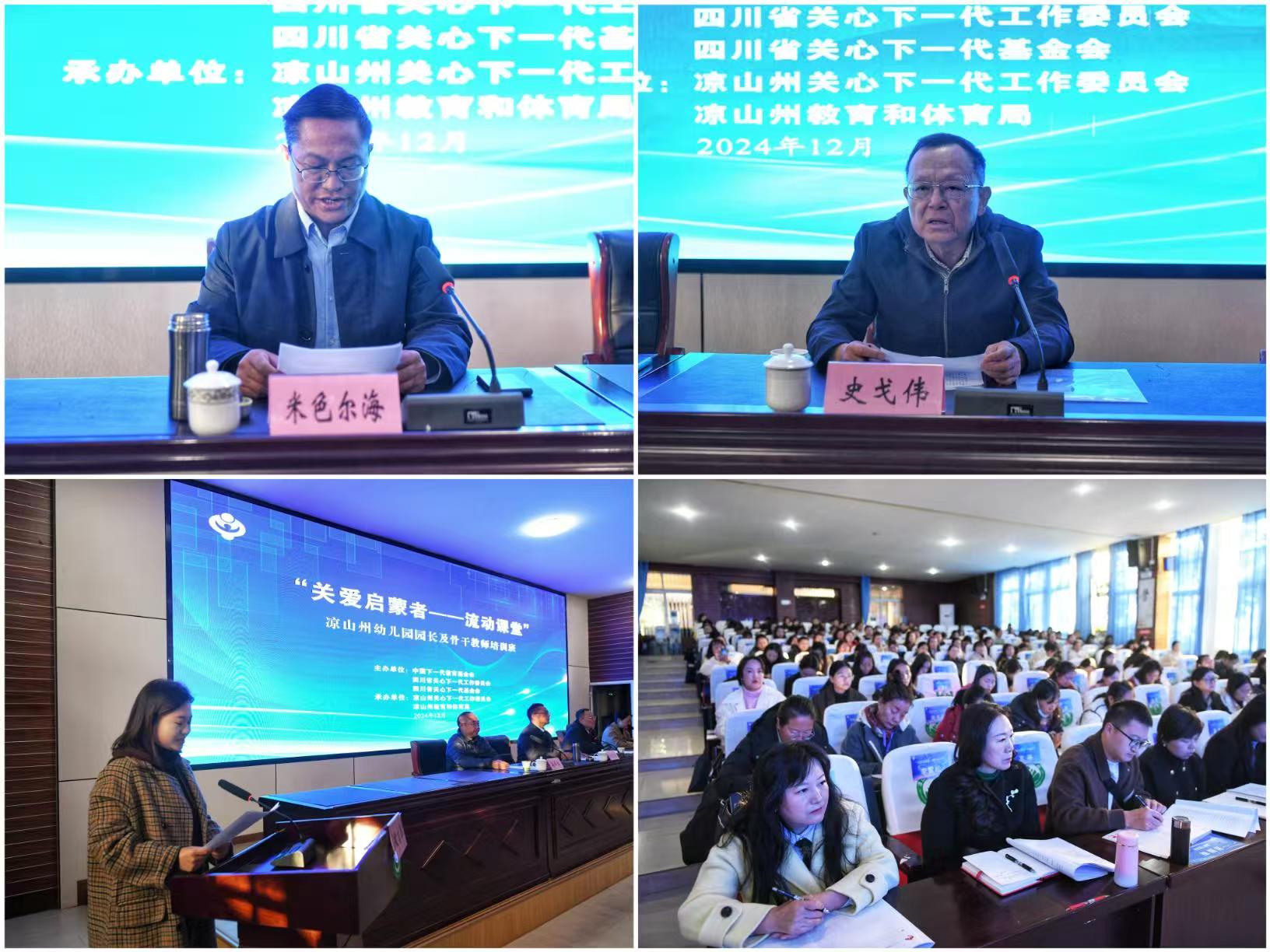 “关爱启蒙者——流动课堂”是省关工委、省关心下一代基金会关心支持凉山关心下一代工作的优质品牌项目。自2018年以来,已连续举办五届,为我州900余名幼教工作者提供学习培训机会,助力打造高素质、专业化的幼儿教师队伍。本次培训班为期三天,邀请国家级知名教育专家学者授课,内容涵盖幼儿教育理论、教学方法、管理策略等多个方面,旨在通过系统的学习和实践,让参训学员在互动中学习,在交流中成长。