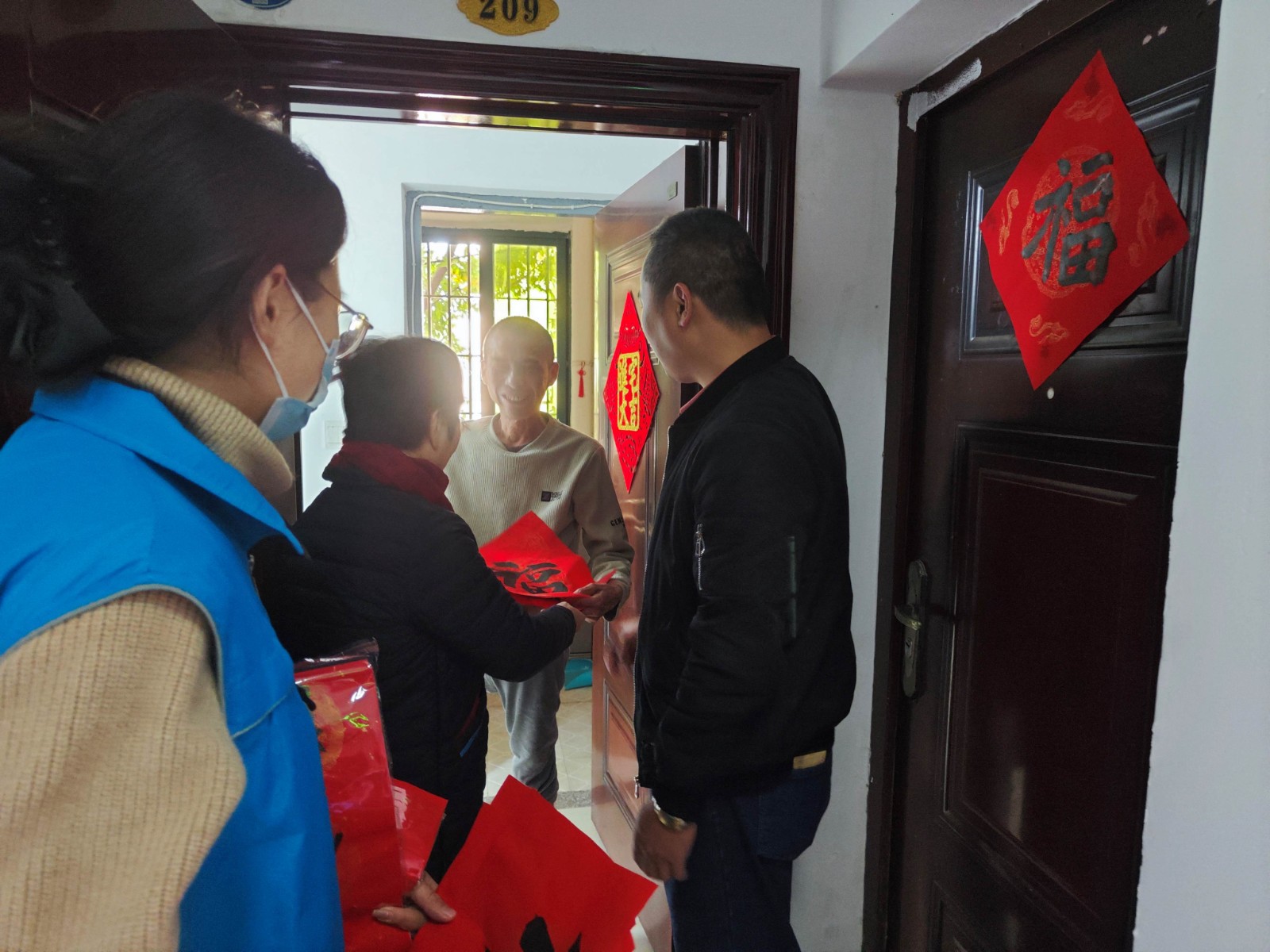 芗城区关工委主任冯爱珍一行人还深入社区低保户家中,将这些充满温情与祝福的春联送到他们手中。收到春联的居民们脸上洋溢着幸福的笑容,对这份贴心的礼物表示由衷的感谢和赞赏。