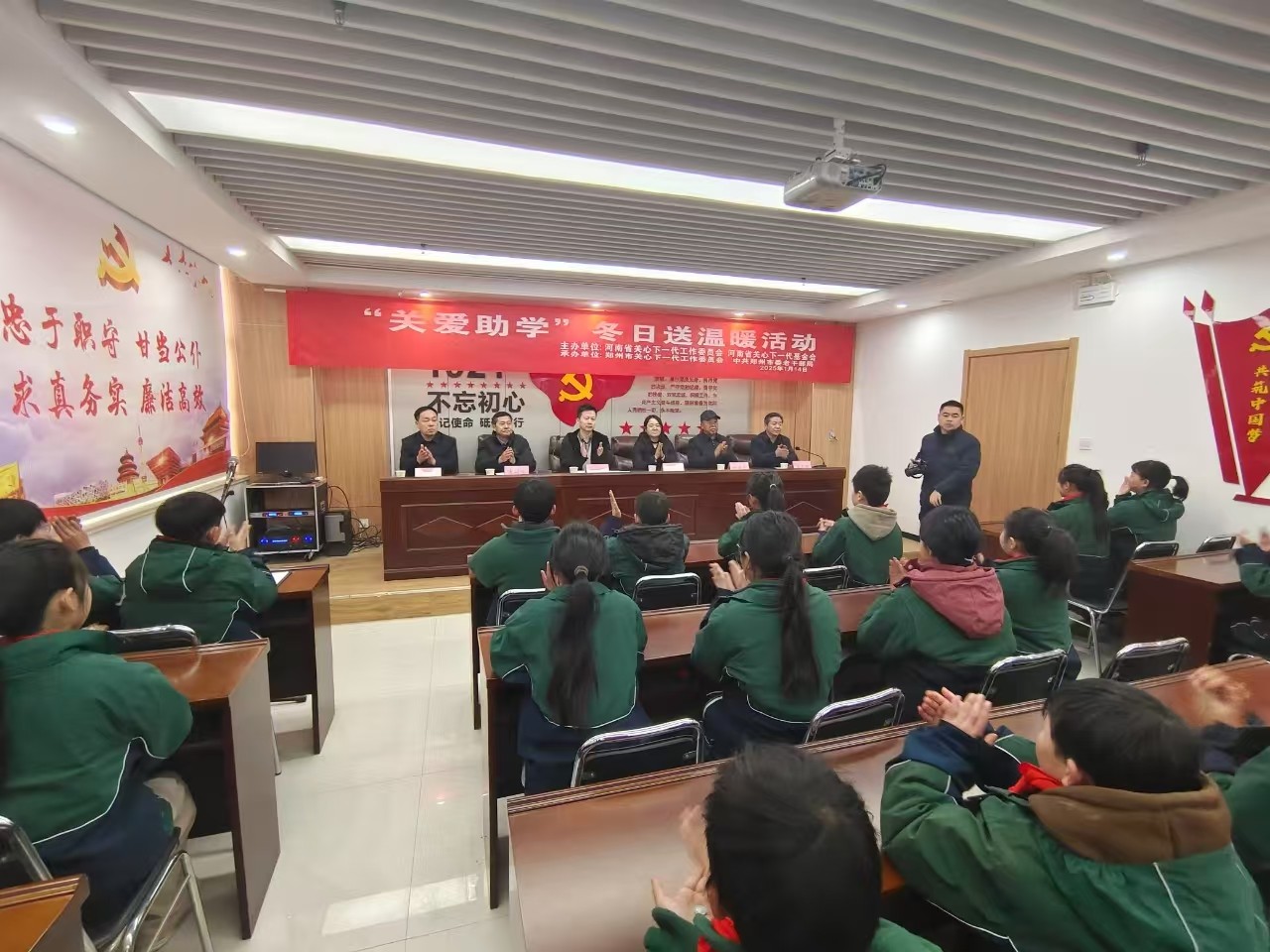 1月14日上午,河南省关心下一代工作委员会、河南省关心下一代基金会联合郑州市关心下一代工作委员会、中共郑州市委老干部局来到中牟县雁鸣湖镇太平庄学校开展“关爱助学”冬日送温暖捐赠活动,向太平庄学校和郑州市盲聋哑学校捐赠资金8.77万元,用于为困难学生购买学习和保暖物品。