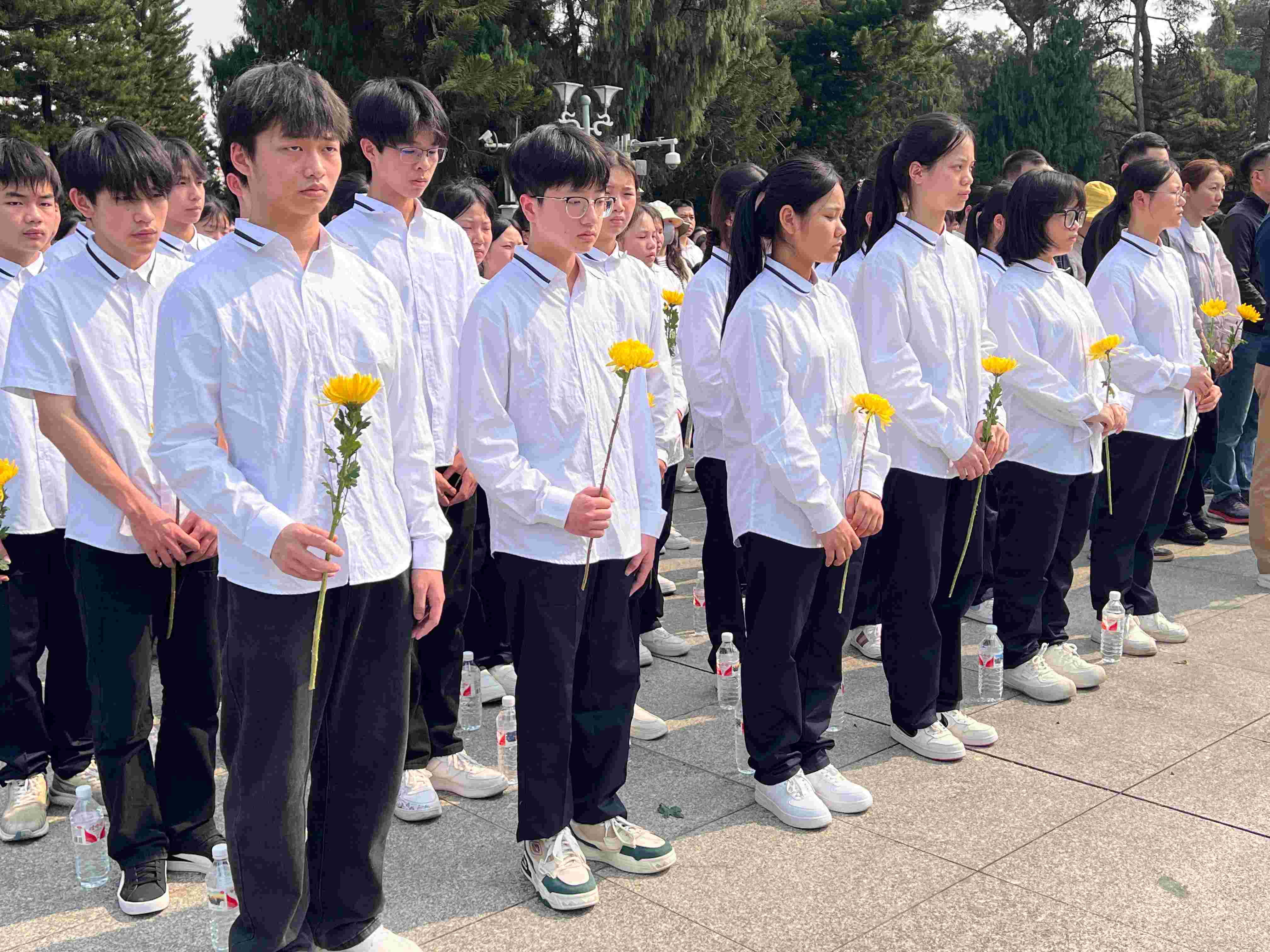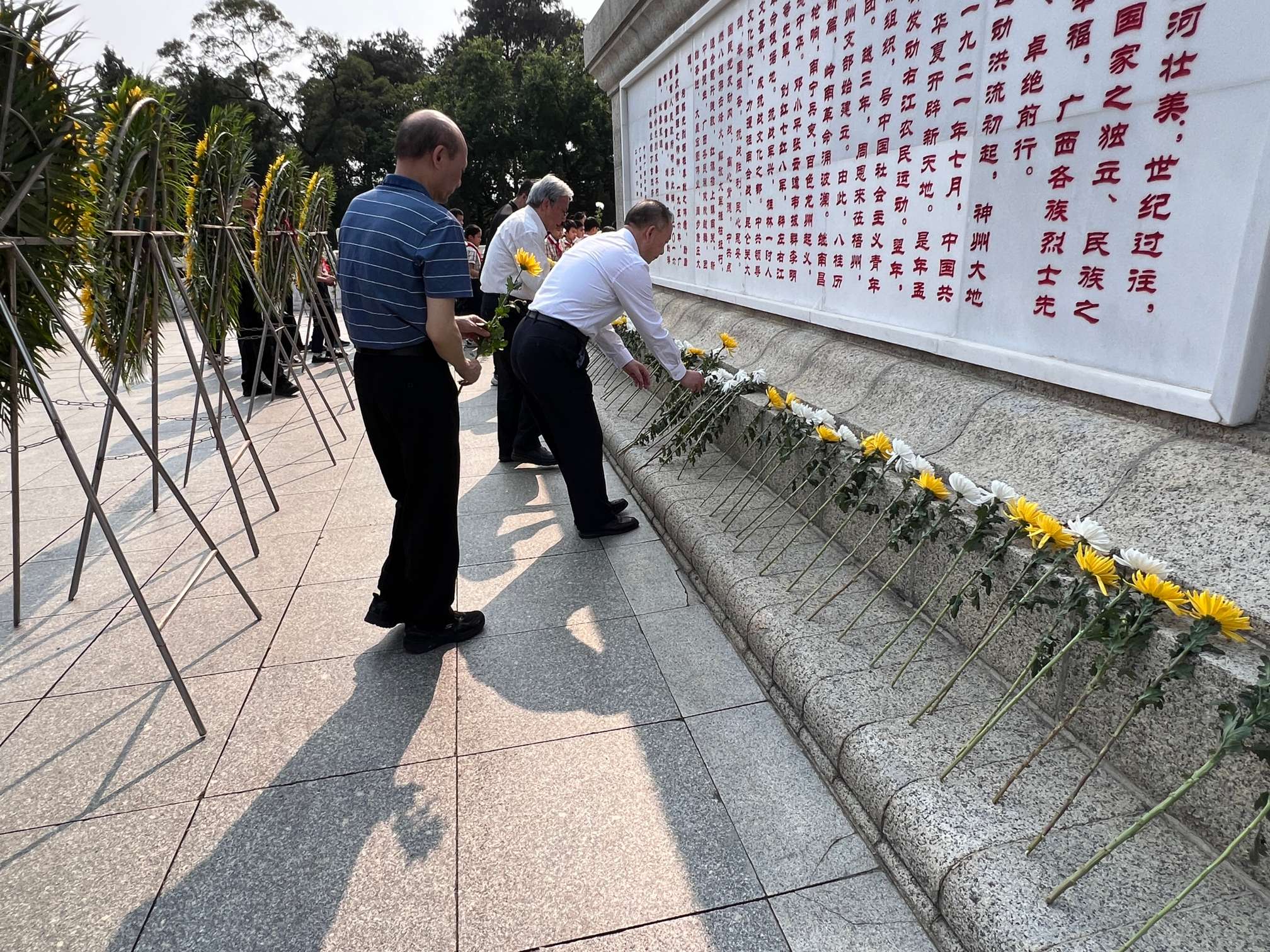 在《献花曲》中,市关工委主任梁中骅,自治区党委老干部局机关党委书记朱林,兴宁区关工委主任罗思义,南宁市卫校党委书记党委委员、人事科科长张曲涛,安宁路小学党委书记、校长蒙桂英上前整理缎带,全体人员向革命先烈三鞠躬。随后,所有人员依次献花。悼念仪式结束后,全体人员依次参观了毛主席接见广西各族人民纪念馆。丰富的历史资料和珍贵文物,让大家深刻感受到革命先辈的伟大精神和爱国情怀。