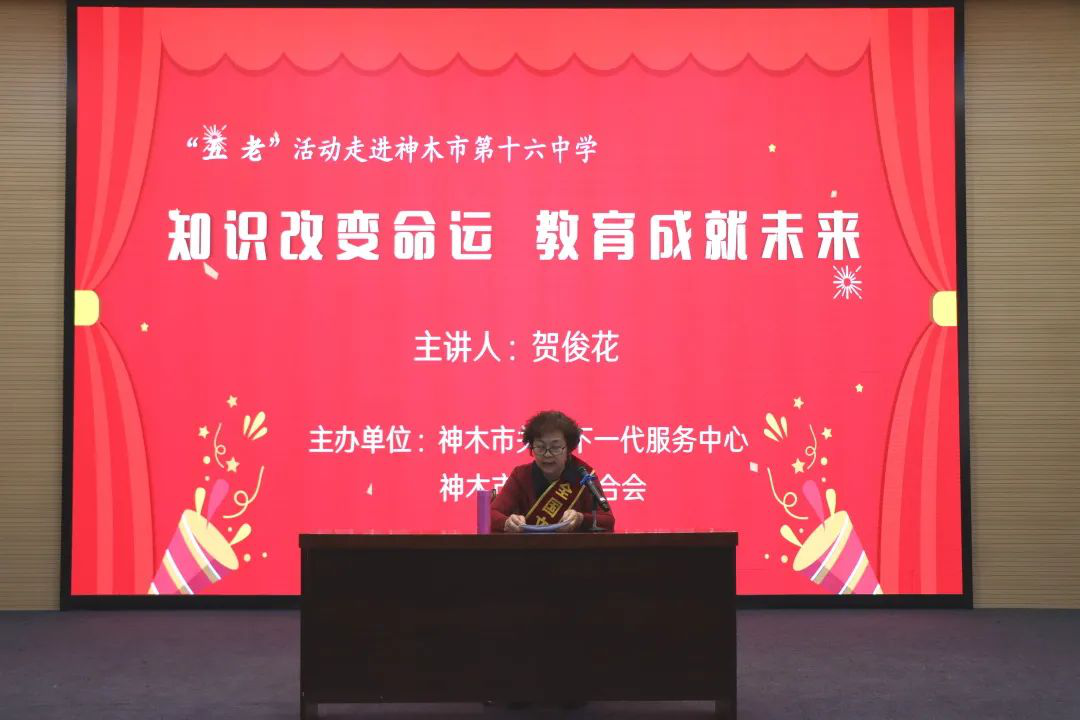 活动中,神木市关工委“五老”家风家教宣讲团讲师、“全国文明家庭”获得者贺俊花为全体师生和家长做了“知识改变命运·教育成就未来”的报告。“五老”贺俊花结合自身经历,强调了教育与家庭在青少年成长中的关键作用,引发了在场家长的深刻共鸣。