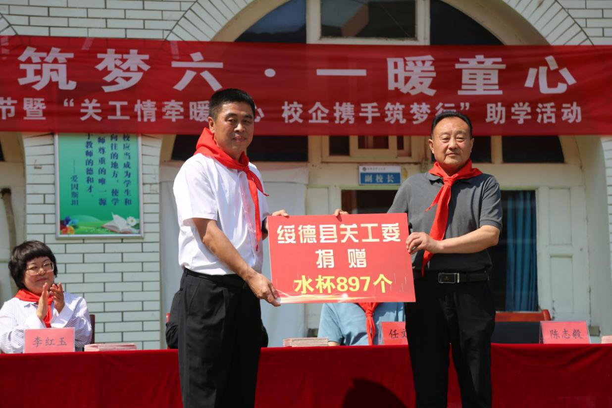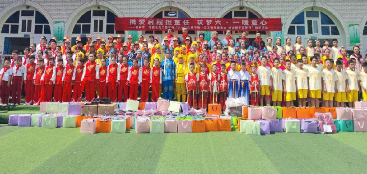 活动中,市县两级关工委为孩子们捐赠了价值近十万余元的水壶、书籍、书包等学习用品。榆林市关工委委员、市女企业家协会副会长、榆林市安达房地产有限公司董事长李红玉女士不忘桑梓,回报母校,为该校176名困难家庭学生带来了运动服、运动鞋等“六一”礼物,让每一位学生都能感受到来自“五老”和社会爱心人士的关爱与温暖。