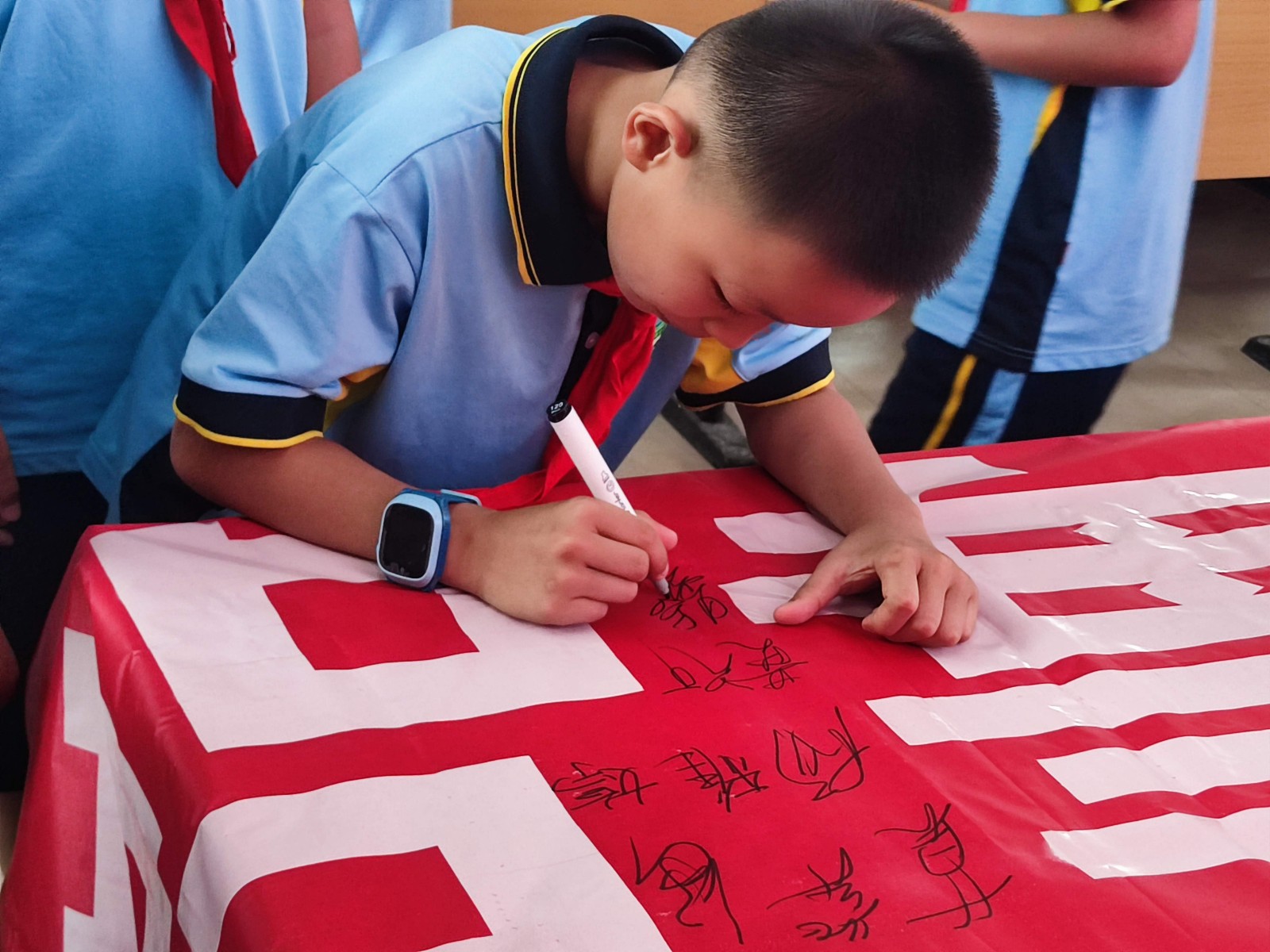 活动现场,禁毒民警化身“禁毒讲师”,以典型案例为切入点,通过发放图文并茂的禁毒宣传手册、组织趣味互动、开展有奖问答等形式,由浅入深地讲解传统毒品与新型毒品的形态特征、生理危害及辨别技巧。在讲解过程中,民警还向同学们讲述了从古至今的禁毒历史,阐述了禁毒的重要意义,并系统介绍了毒品的危害与种类。结合青少年认知特点,用生动鲜活的案例,揭开毒品极具隐蔽性与欺骗性的“面纱”,引导师生提升识毒防毒能力。同时,市关工委向学校捐赠禁毒展柜及仿真毒品教学样品,为常态化开展禁毒教育提供了实物支撑,助力构建“课堂学习+实践体验”的禁毒宣传体系。“珍爱生命、远离毒品”签名承诺环节将活动推向高潮。学生代表们有序走上前,在横幅上郑重写下自己的名字,用实际行动表达抵制毒品的坚定决心。“我知道了毒品会破坏家庭,以后要把学到的知识分享给家人。”四年级学生莫紫涵同学说道。